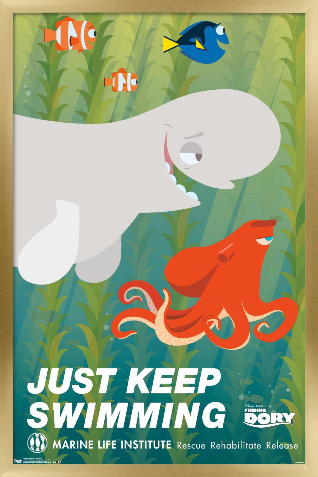 Disney Pixar Finding Dory Just Keep Swimming Wall Poster 14 725 X 22 375 Framed Walmart Com